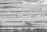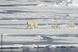 Wild polar bear (Ursus maritimus) mother and cub on the pack ice