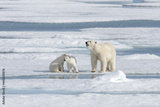 Wild polar bear (Ursus maritimus) mother and cub on the pack ice