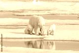 Wild polar bear (Ursus maritimus) mother and cub on the pack ice