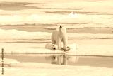 Wild polar bear (Ursus maritimus) mother and cub on the pack ice