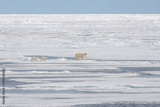 Wild polar bear (Ursus maritimus) mother and cub on the pack ice