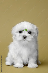 Little white puppies maltese in the studio
