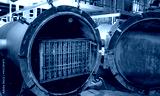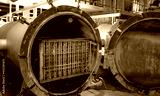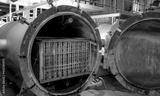High-pressure processing or high hydrostatic pressure machine for food product. Metal tank in food manufacturing factory. Food preservation by pasteurizing in high-pressure processing. Canned food.