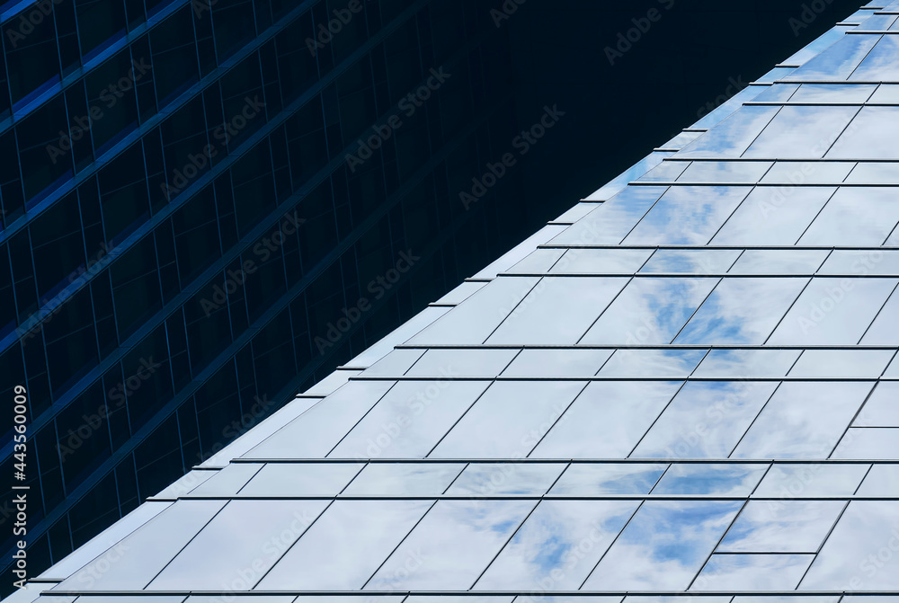 Modern Building Glass Facade reflection with sky Architecture details