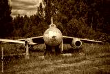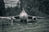 Old rusty abandoned airplane in the open air. Remnants of the former Soviet power. A military plane rusts in the forest.