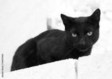 Black cat on a white wall