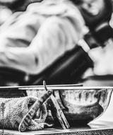 Barber shop, razor. Vintage straight razor. Hair salon. Closeup straight razor, vintage. Straight razor, barbershop, towel. Men haircut. Man in barbershop salo