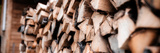 a woodpile with harvesting and stacked firewood of chopped wood for kindling and heating the house. firewood of the birch tree. banner