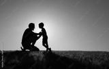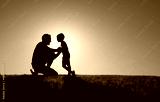 Happy father son moment silhouette. Fatherhood, and childhood concept.