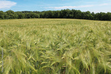 Paysage campagne, champs de blé sous le ciel bleu, agriculture bio, sud de la France