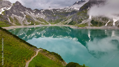 Bird's eye view of the Lüner Lake (Vorarlberg, Austria)