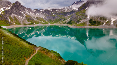 Bird's eye view of the Lüner Lake (Vorarlberg, Austria)