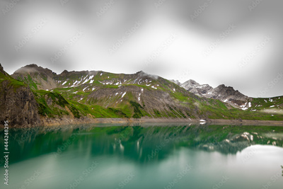 reflections of the mountains in the Lake Lüner (Vorarlberg, Austria)