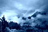 clouds over the forest in the mountains (Vorarlberg, Austria)