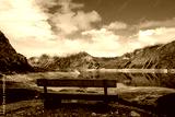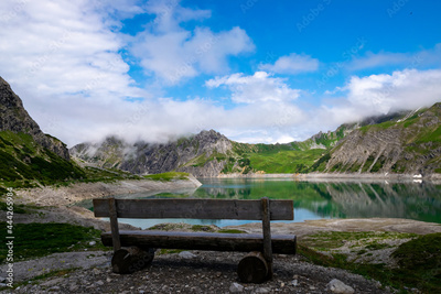 wooden bench next to the Lünersee (Vorarlberg, Austria)