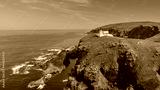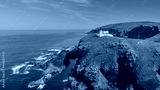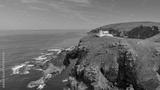 An aerial view of Stoer Head Lighthouse in the Scottish Highlands, UK