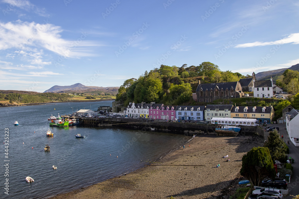 The colourful houses of Portree Harbour on the Isle of Skye, Scottish Highlands, UK