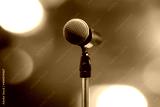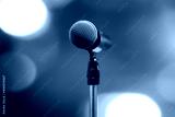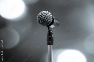 Microphone Public speaking backgrounds, Close-up the microphone on stand for speaker speech presentation stage performance with blur and bokeh light background.