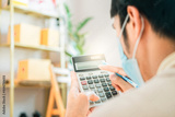 Asian male hand writing order product list on note for online customer in warehouse home office ordering products from online to business cargo supply market service delivery form home office