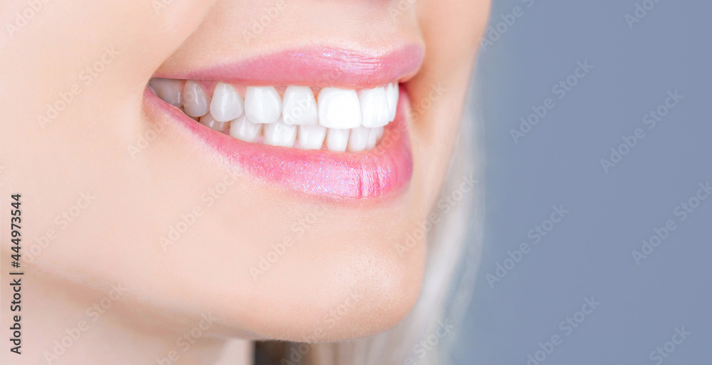 Dental care. Dentistry concept. Perfect healthy teeth. Closeup shot of woman's toothy smile. Perfect healthy teeth smile woman. Teeth Whitening. Dental health Concept. Teeth whitening procedure