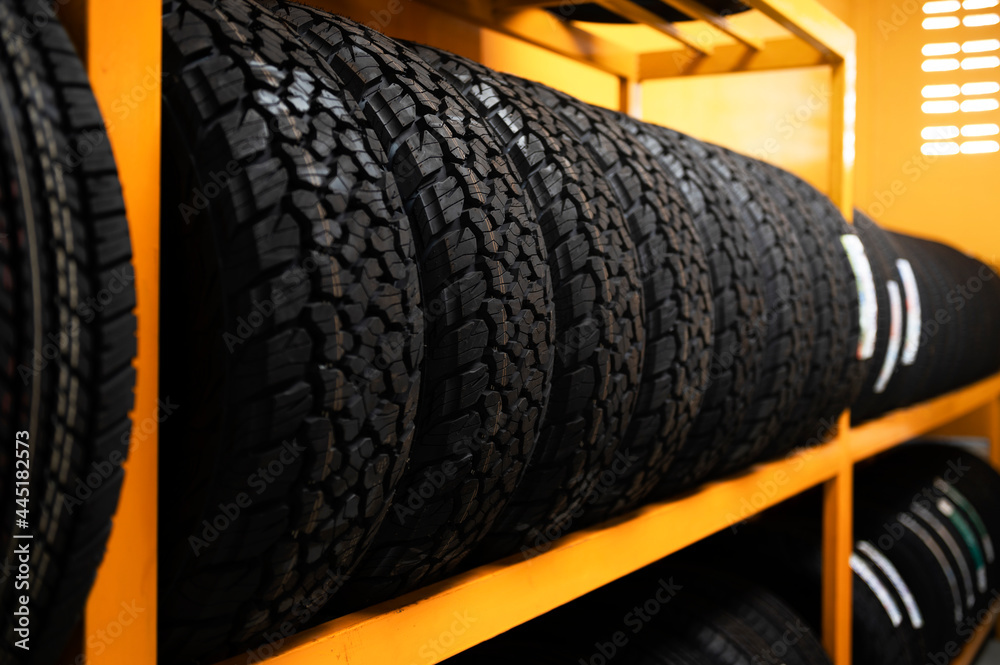 Close-up of new tires or stock tires car driving concept safe driving concept