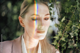 Portrait of an attractive woman with rainbow light across face