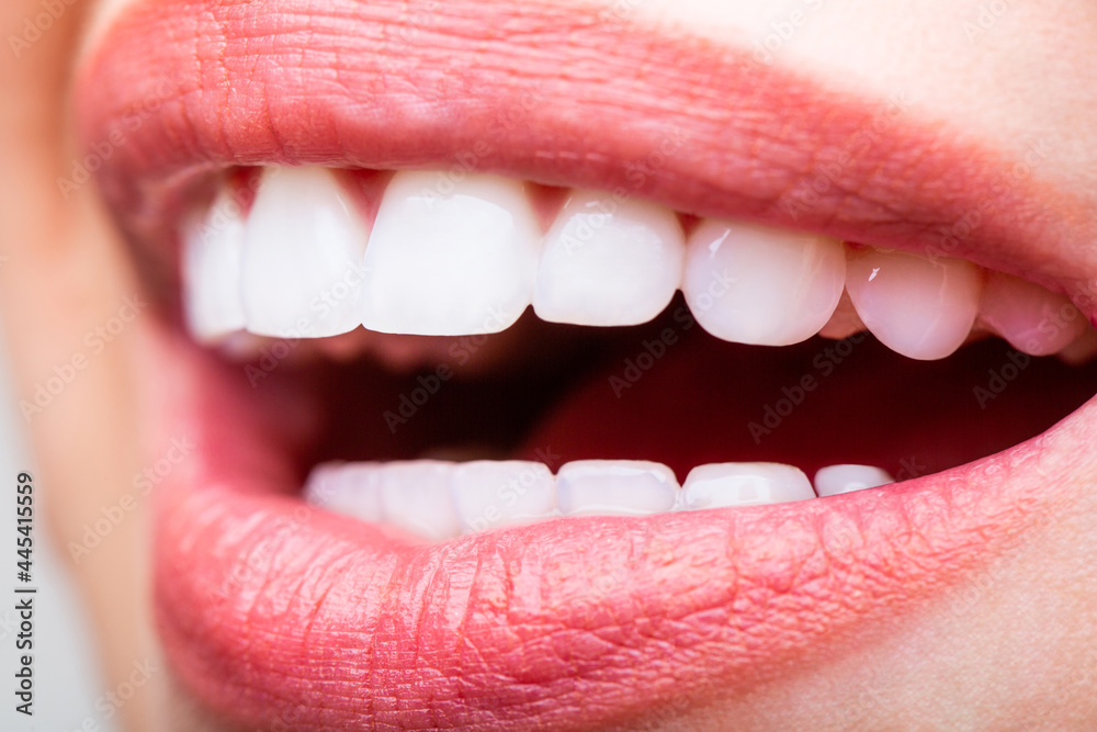 Teeth Whitening. Dental health Concept. Teeth whitening procedure. Dental care. Dentistry concept. Perfect healthy teeth. Closeup shot of woman's toothy smile. Perfect healthy teeth smile woman