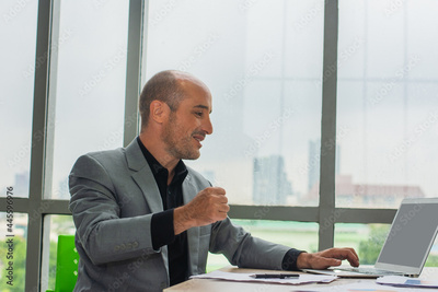 Businessman success trading online with digital graph market growth , Trader happy in profit trade