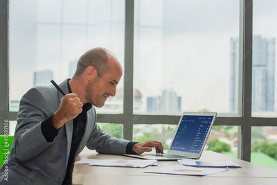 Businessman success trading online with digital graph market growth , Trader happy in profit trade