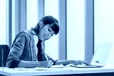 Businesswoman working in office with computer laptop technology , Working women work smart