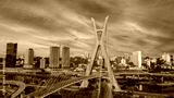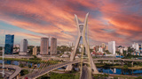 Estaiada's bridge aerial view. São Paulo, Brazil. Business center. Financial Center. Famous cable stayed (Ponte Estaiada) bridge