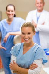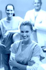 Dental team in stomatology clinic smiling staff
