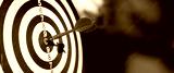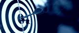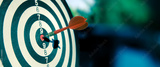 Bulls eye or bullseye target or dart board has red dart arrow throw hitting the center of a shooting for business targeting and winning goals business concepts.