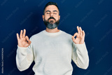 Young hispanic man wearing casual clothes relax and smiling with eyes closed doing meditation gesture with fingers. yoga concept.