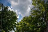 Treetops and clouds in the sky