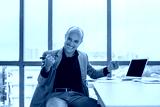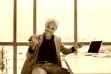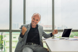 Businessman hold pen smile in office, Businessman smile happy , Trader online cryptocurrency success