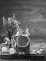 Refreshing summer lavender drink, homemade lemonade. Alcoholic cocktail