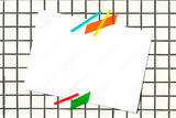 White paper frame with colorful scotch tapes on the ceramic tile table. Copy space