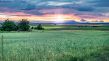 Pacific Northwest Countryside Sunset: Picturesque Farmland and Mountain in the North Cascades at Sunset - Washington, USA