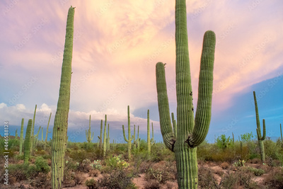 Saguaros and Cacti on Hillside in Sonoran Desert - Saguaro National Park, Arizona, USA