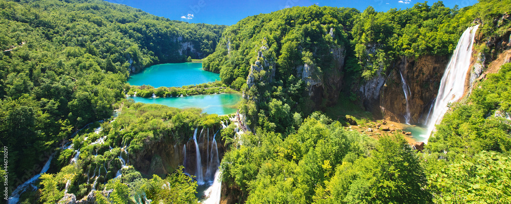 Croatia, high resolution panorama of large size, Plitvice lakes and waterfalls