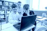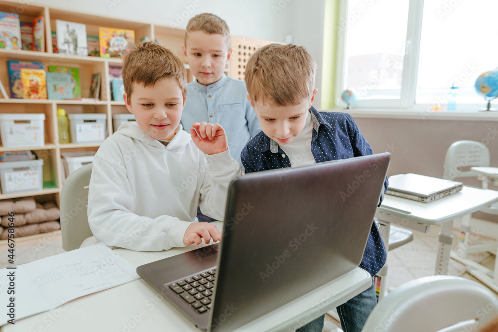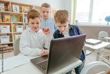 Elementary school students learning in the classroom using laptop