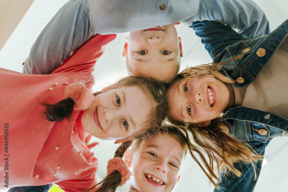 Group of children looking at camera laughing and smiling