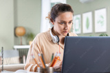 Young woman working from home.