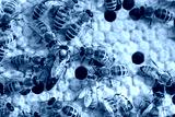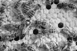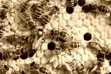 Queen bee is always surrounded by the workers bees - their servant. Queen bee lays eggs in the cell.