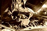 Asians Man medical protect protection mask face mask mechanic inspection hold wrench for fix blue car for service maintenance insurance with car engine bonnet car.for transport automobile automotive