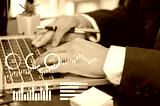 Businessman typing on laptop to plan business strategy Financial exchange market and investment analysis for future technology concepts.