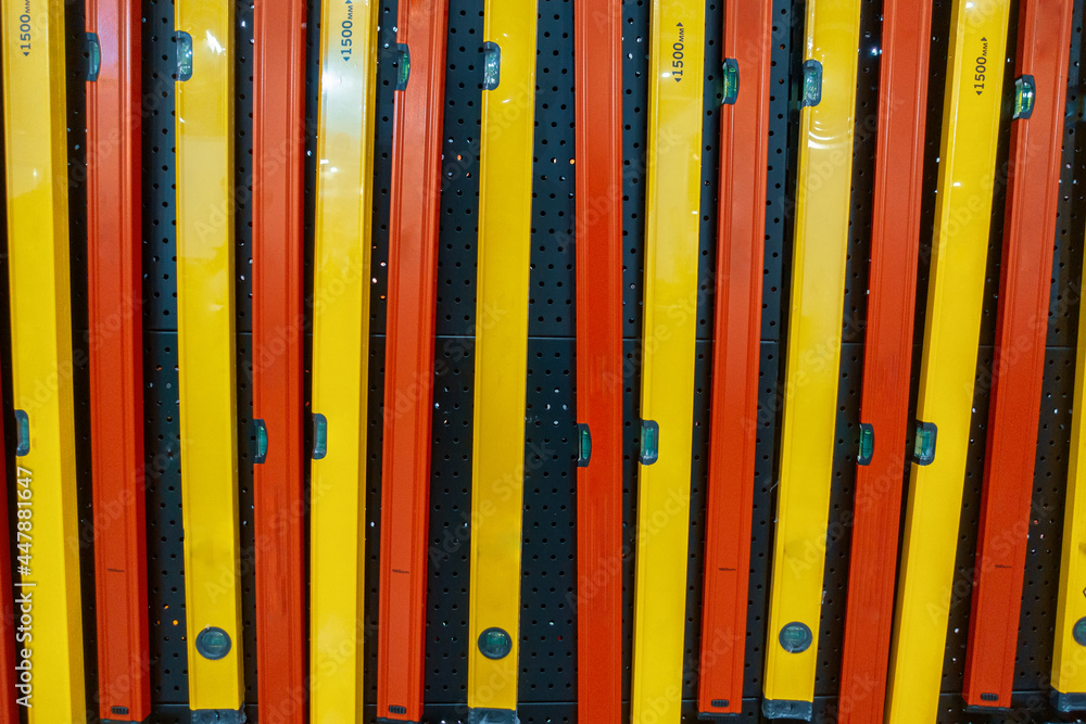 Set of construction levels. Construction measuring tool.