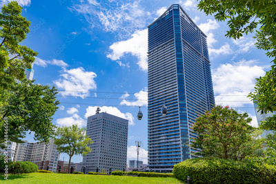 横浜エアキャビン(ロープウェイ)のある横浜みなとみらいの風景