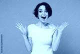 Young excited surprised amazed happy impressed woman 20s with bob haircut wear white t-shirt looking camera spread hands isolated on pastel purple background studio portrait. People lifestyle concept